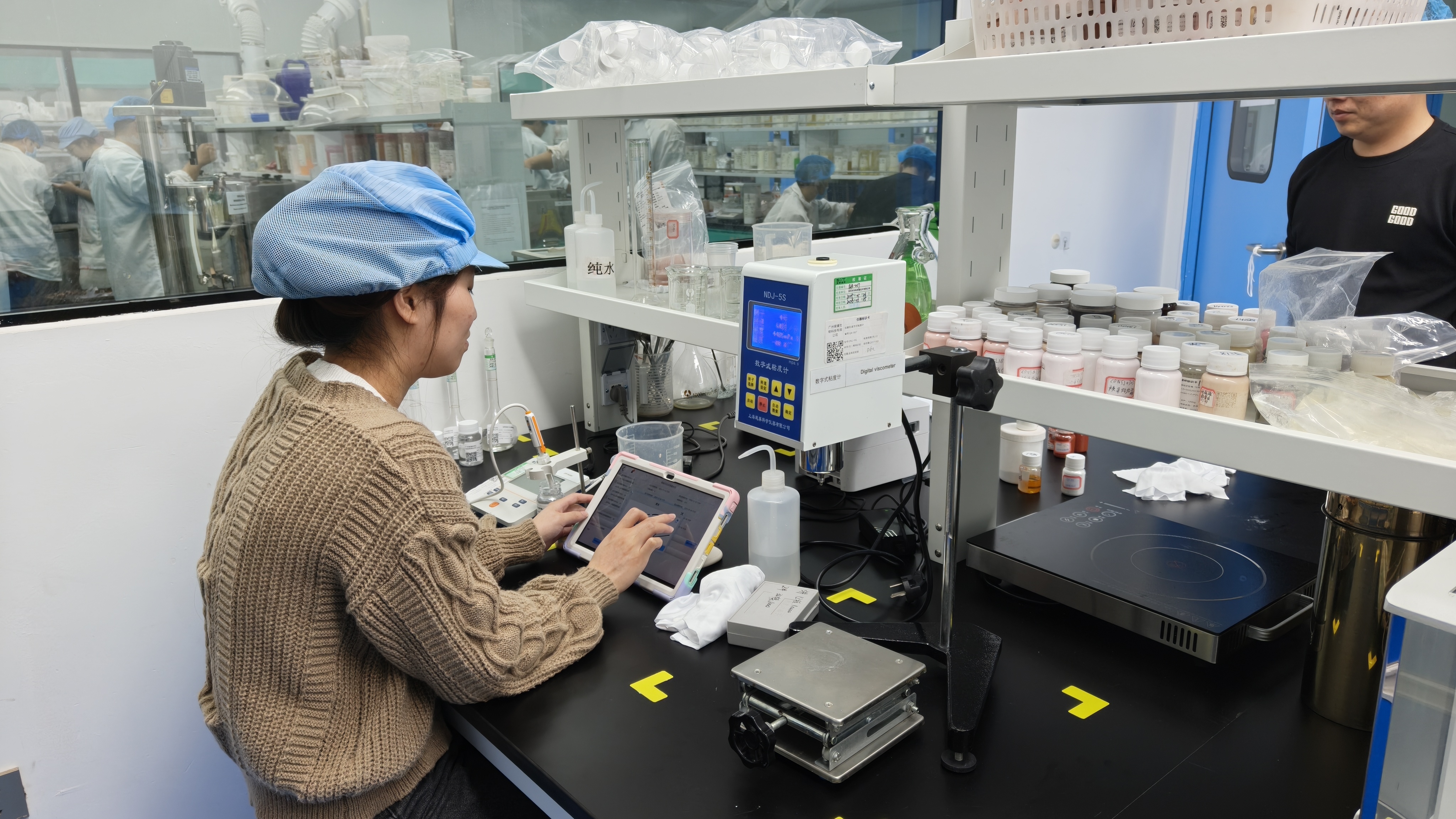 走进广州翠黛生物科技有限公司的实验室,研发人员正专注地调试一款形似铅笔的彩妆笔。总经理谢志斌拿起样品在记者手背上轻轻描绘,粉质细腻柔滑,一抹即成色。“这支笔我们攻关了6年,突破了德国企业技术垄断,如今能替代传统眼影、腮红等多类产品。”他介绍道。