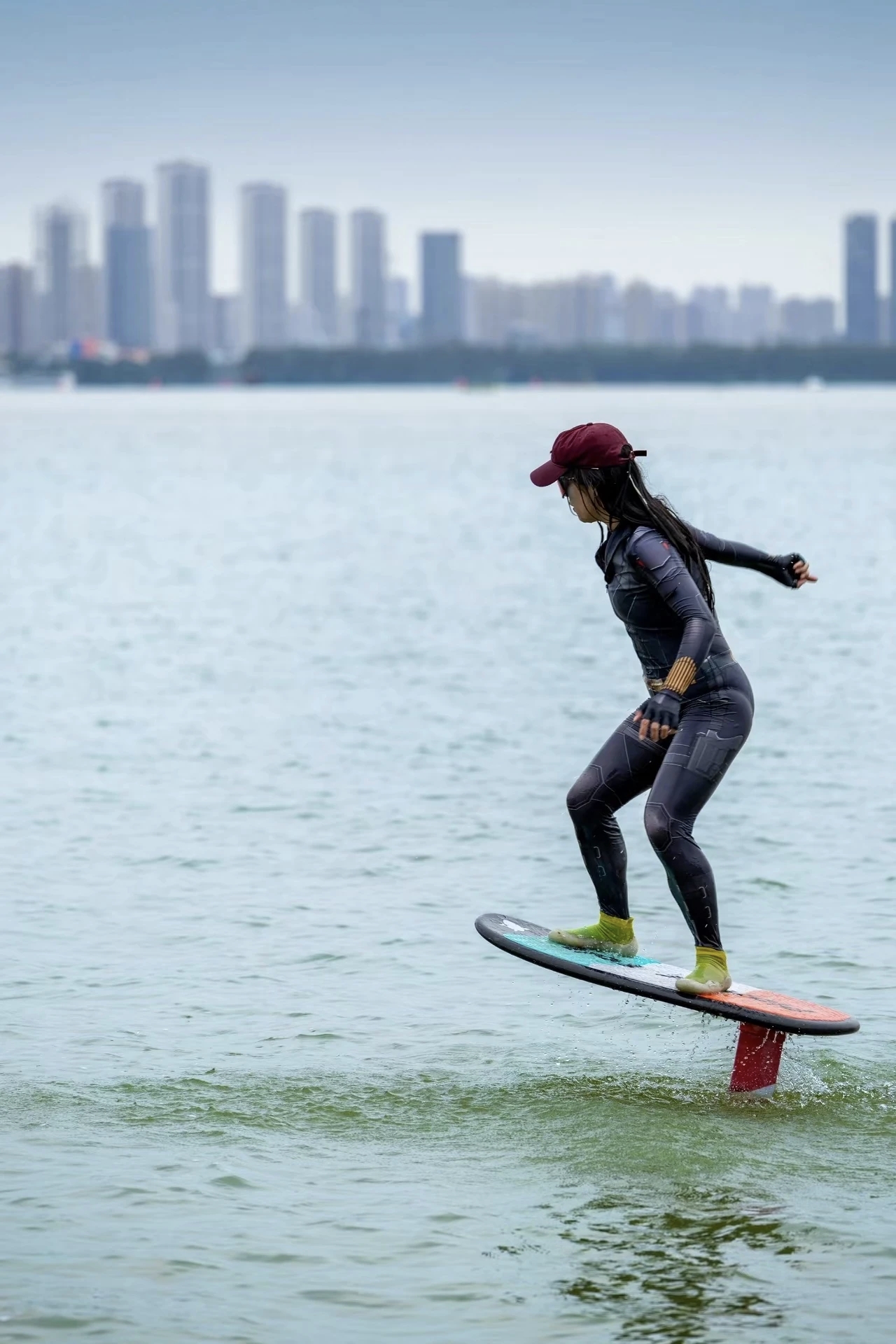 三年前,无动力水翼板运动刚在国内兴起,贝贝接受了一位品牌方代表的邀约,开始尝试这项运动。